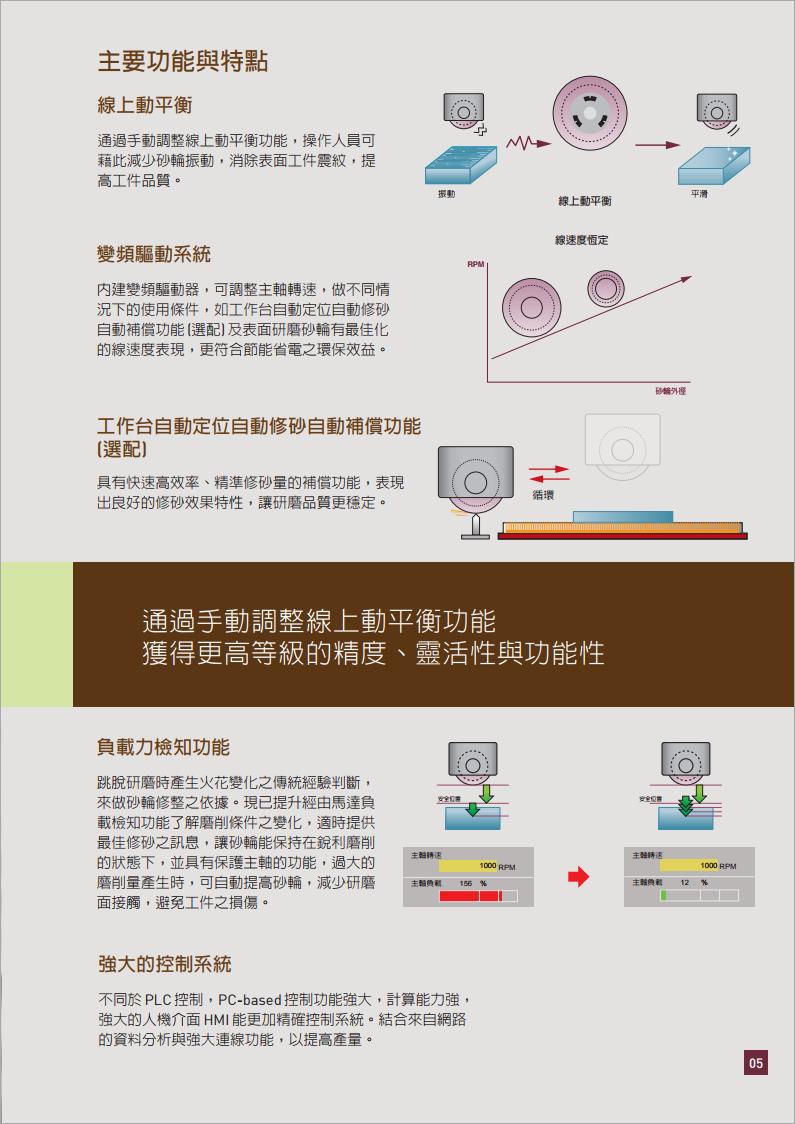 負(fù)載力檢知功能:可觀測磨削時(shí)的負(fù)載力,主動(dòng)告知修砂時(shí)機(jī),主動(dòng)修砂,使機(jī)臺(tái)智慧化。